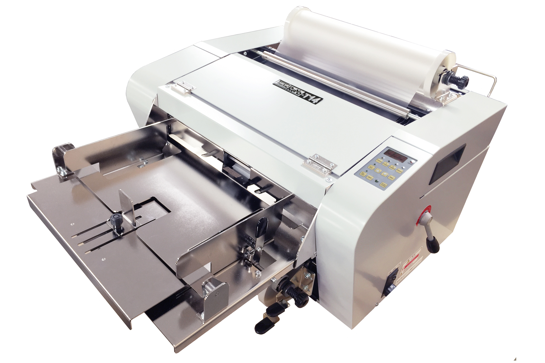 Automatic encapsulation with auto paper feeder and cutter. With a push of a button, laminate up to 425 sheets quickly and unattended. Great for long encapsulated banners or custom materials.